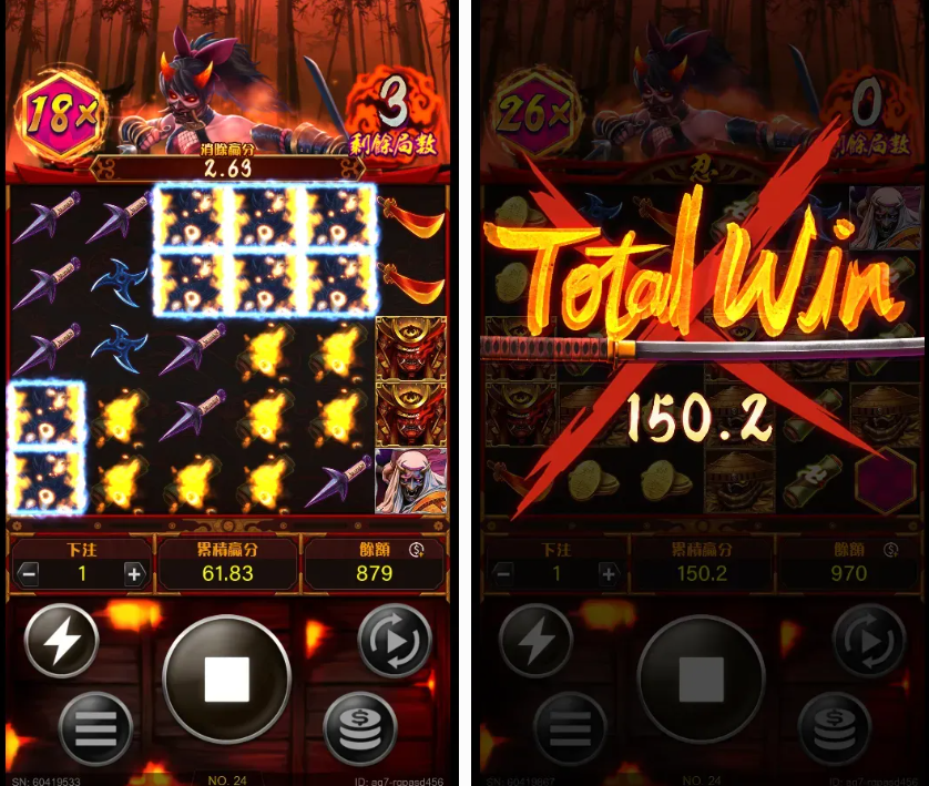 Bạn có thể kết hợp may mắn và chiến lược, đồng thời chọn các phương thức cá cược khác nhau để giành được tiền thưởng cao hơn. Trong trò chơi, bạn sẽ cảm nhận được cảm giác phấn khích khi chiến đấu với các nhân vật trong phim, cho phép bạn trải nghiệm sâu sắc sức hấp dẫn của "Ninja". Nếu bạn khao khát trở thành người chơi may mắn trúng giải độc đắc 51.000 lần, hãy nhanh tay thử thách với máy đánh bạc "Ninja"!